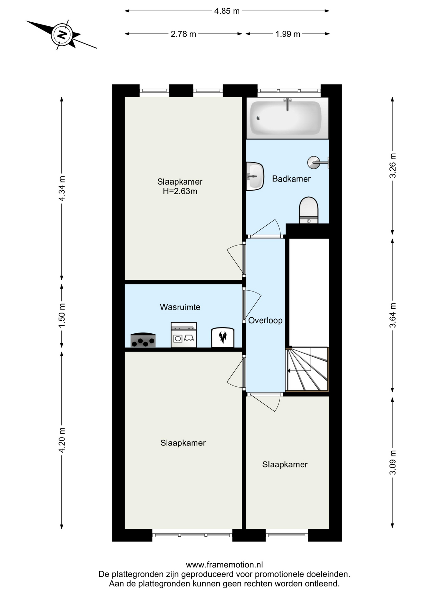 De ruime overloop geeft toegang tot drie goed bemeten slaapkamers, de badkamer en de was-/CV-ruimte.