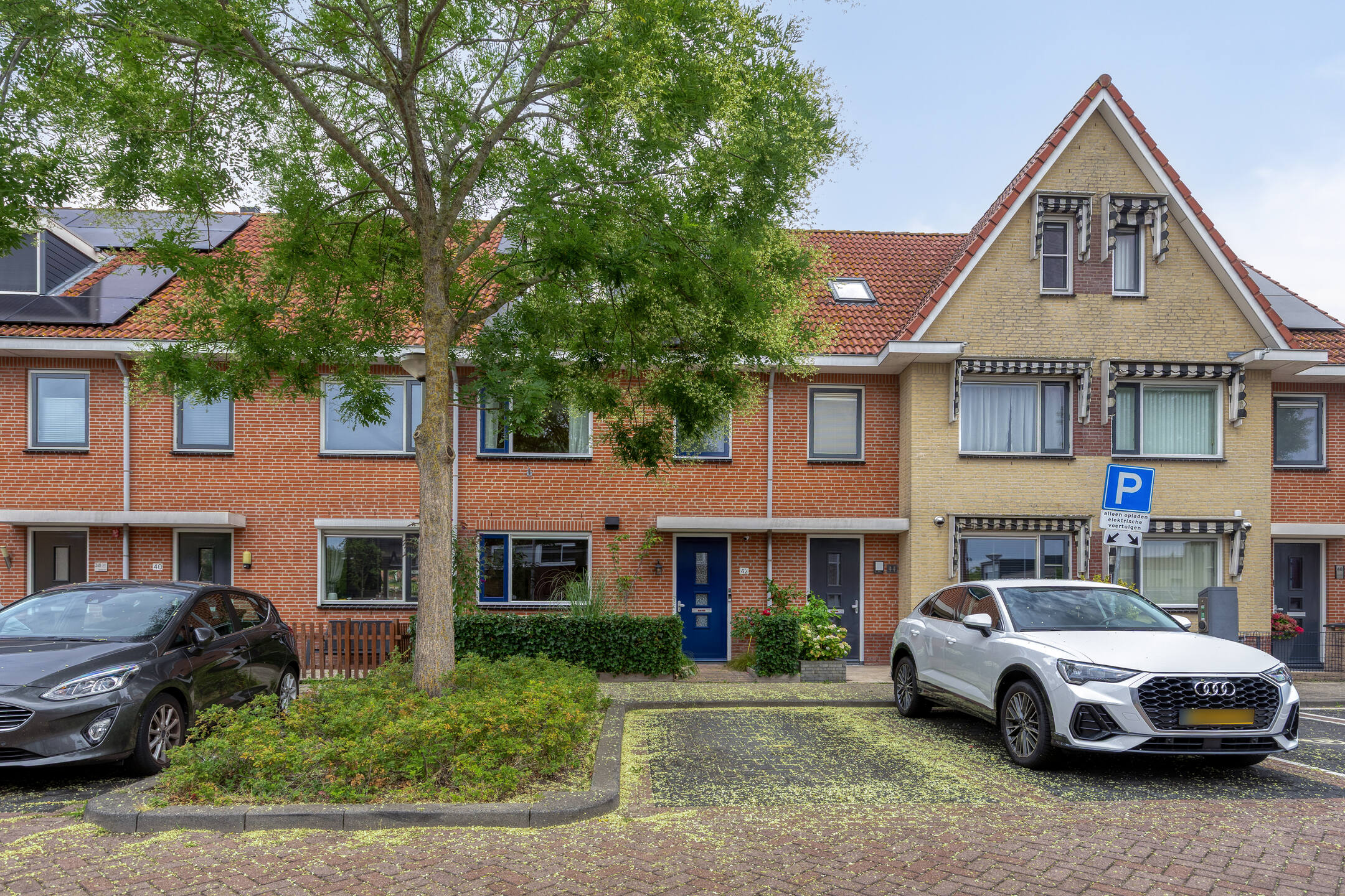 - 12 zonnepanelen met ingebouwde omvormer en hybride warmtepomp aanwezig;