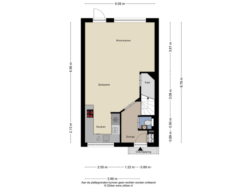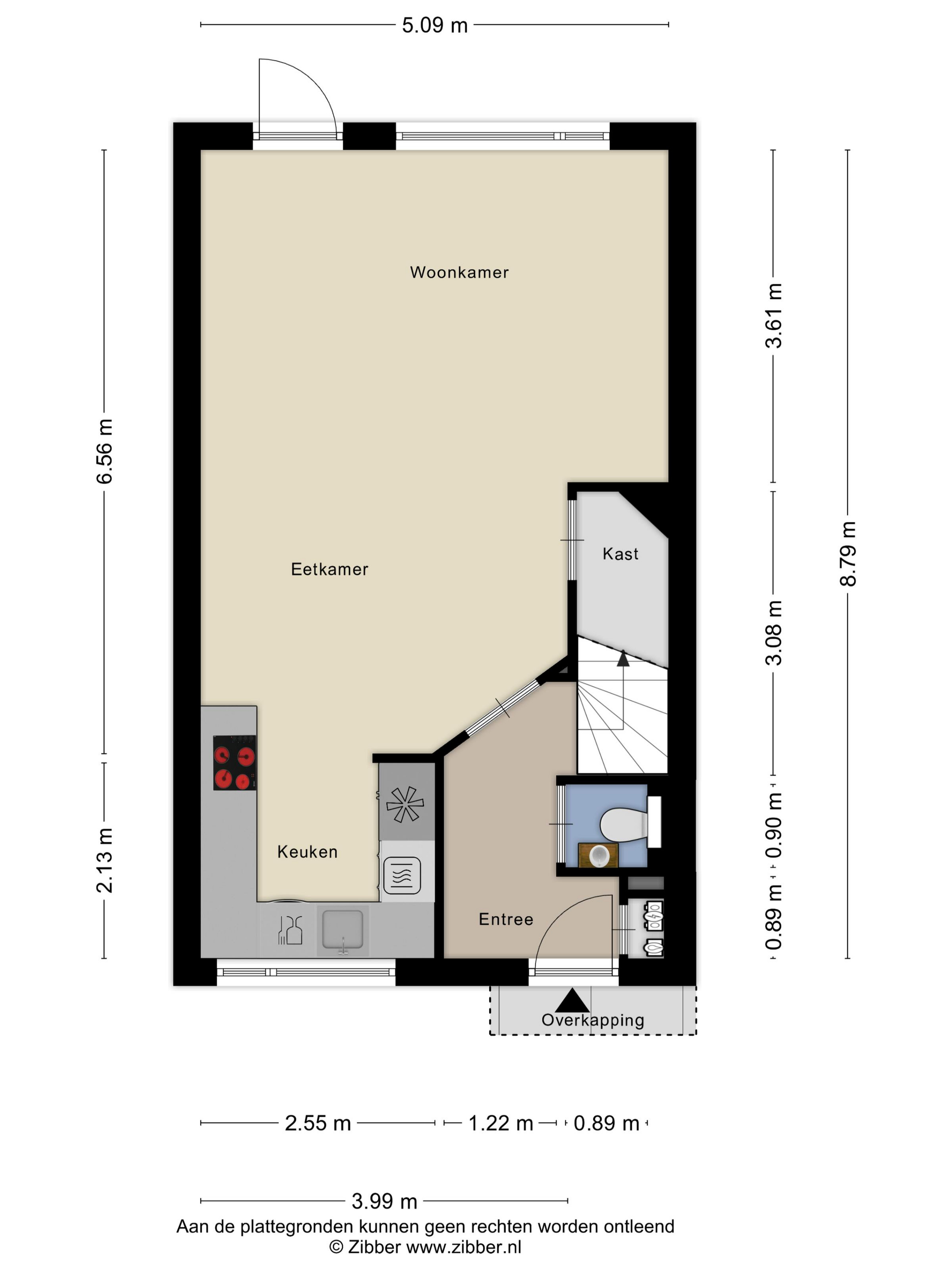 Entree, ruime hal met meterkast en trap naar de 1e verdieping, fraai afgewerkte toiletruimte voorzien van een hangend toilet en fonteintje. De toiletruimte is geheel betegeld en afgewerkt met Portugese tegels, accessoires in koperen kleur, spotjes en panelen deur.