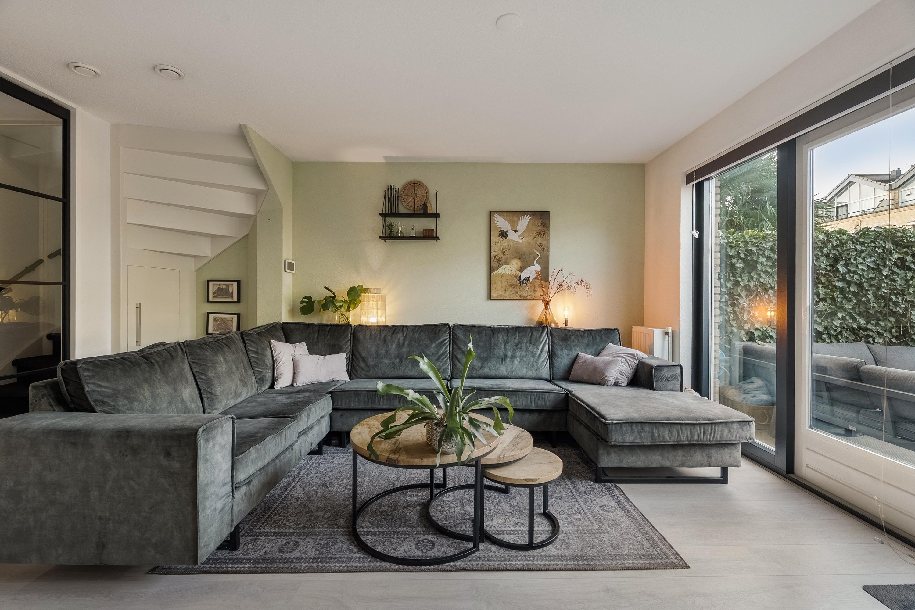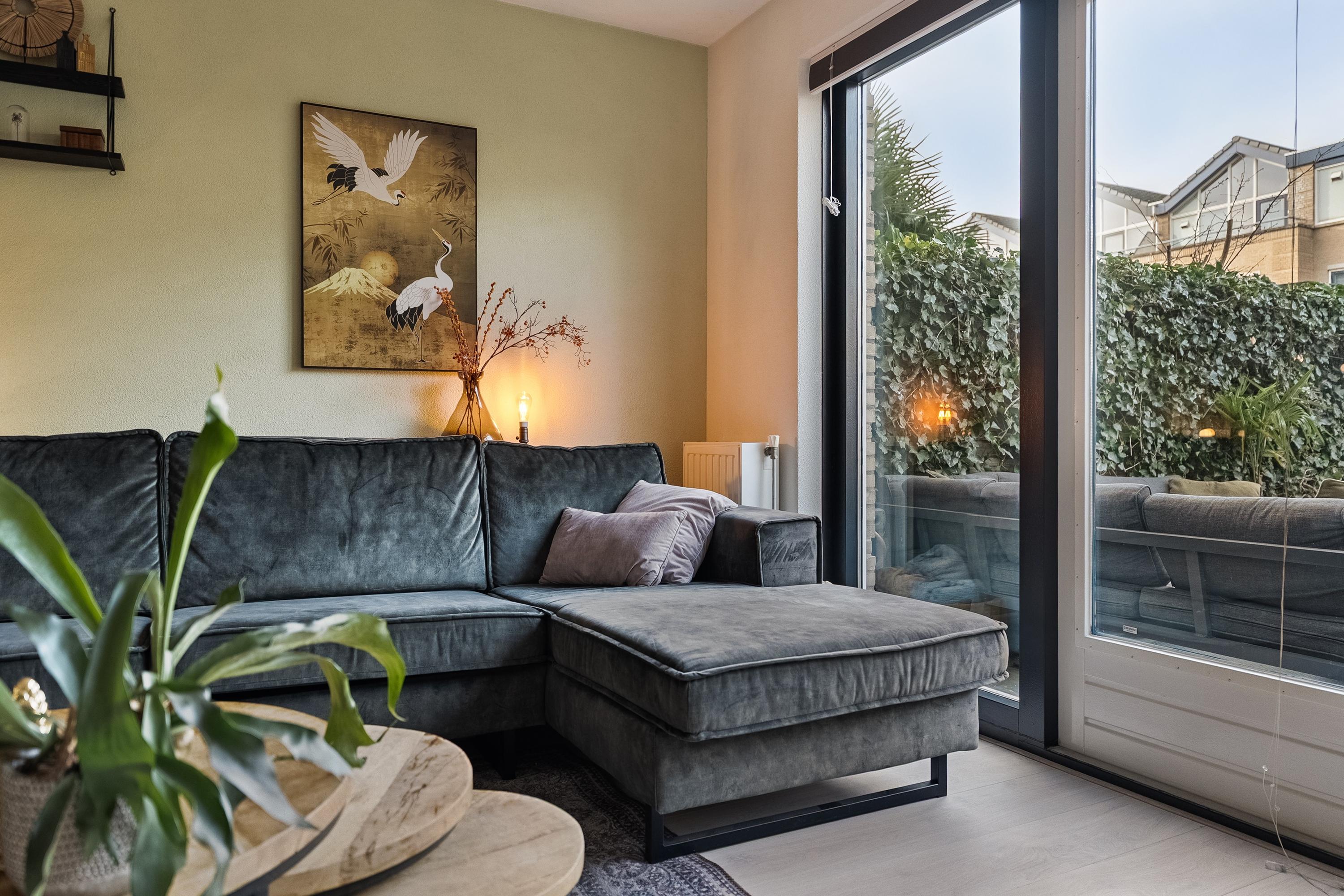 - Lichte tuingerichte woonkamer met openslaande deuren