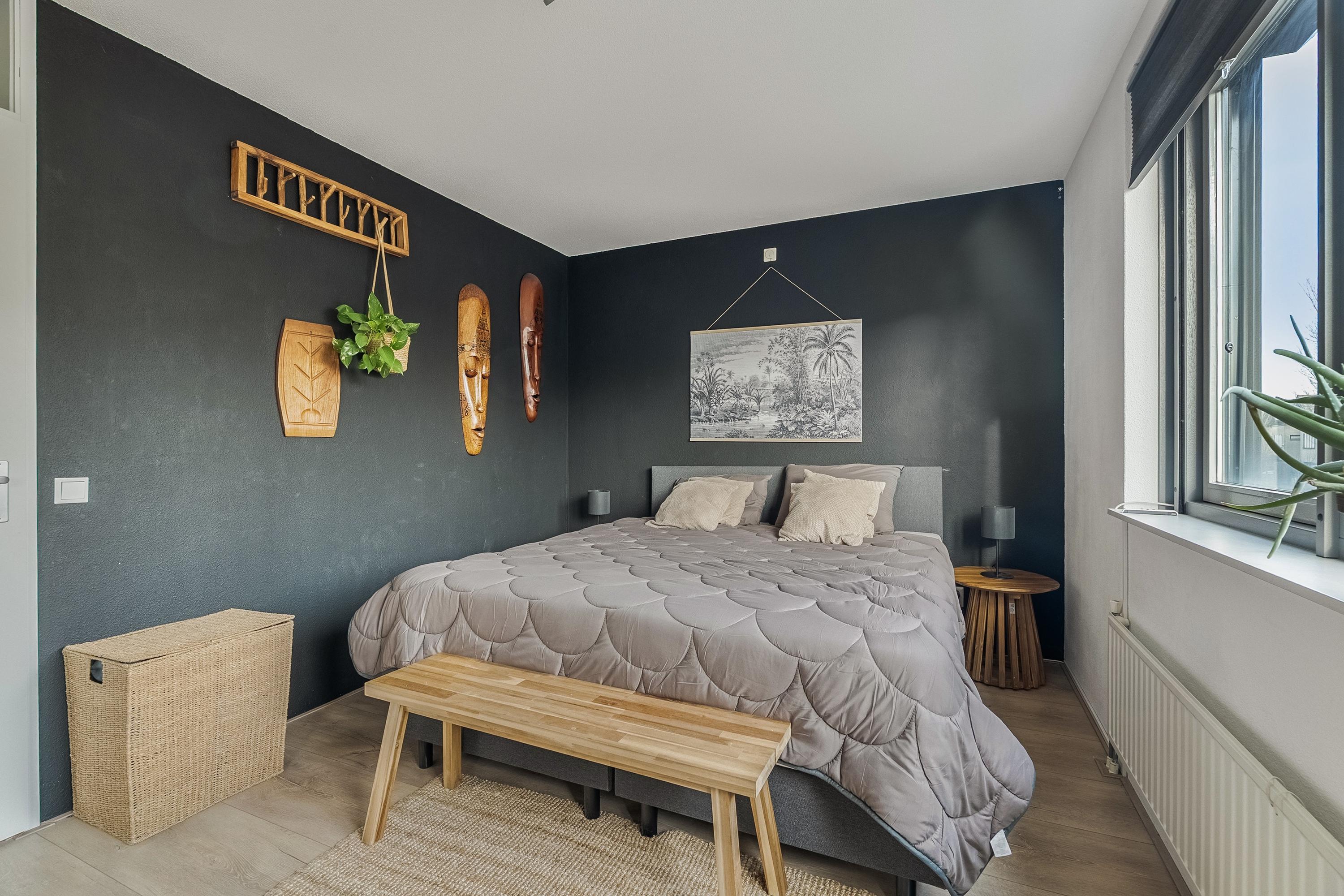 Slaapkamer 4 (voorzijde): uitgerust met airconditioning, een vaste schuifkastenwand en kunststof kozijnen met horren.