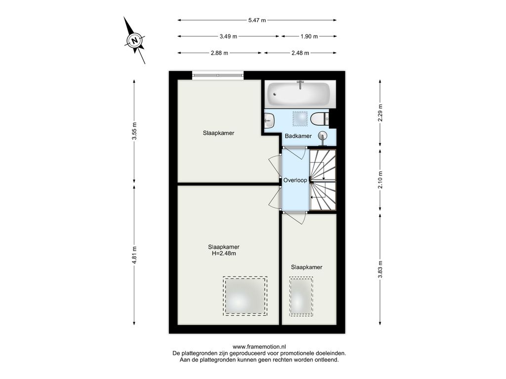 Slaapkamer 3, aan de voorzijde, met veel lichtinval