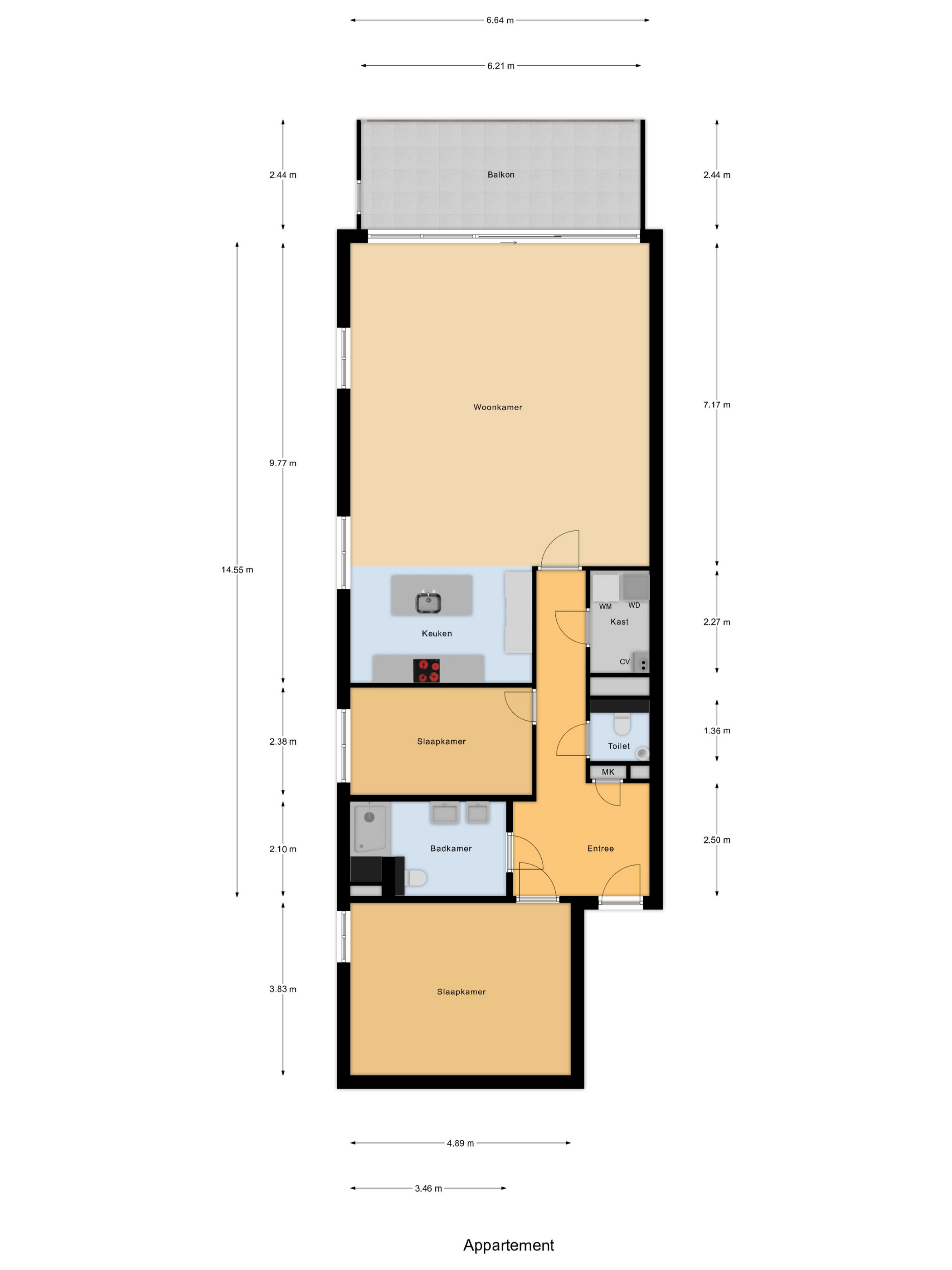 Zodra je de woonkamer binnenkomt, word je direct getrakteerd op een schitterend uitzicht over het water. Dankzij de riante achterpui én de grote zijramen is de living heerlijk licht en ruim. Via de schuifpui stap je zo het riante balkon van ruim 15 m² op – een perfecte plek om vrijwel de hele dag van de zon te genieten. Het balkon is zo groot dat je er eenvoudig een eettafel en een paar fijne stoelen kwijt kunt om te relaxen. Het uitzicht is prachtig en verveelt geen dag. Je kijkt uit over het water richting de Koedood en de polder – een perfecte combinatie tussen rust en een vleugje levendigheid van fietsers, wandelaars en enkele voorbijrijdende auto’s, ver genoeg weg om ze niet te horen.