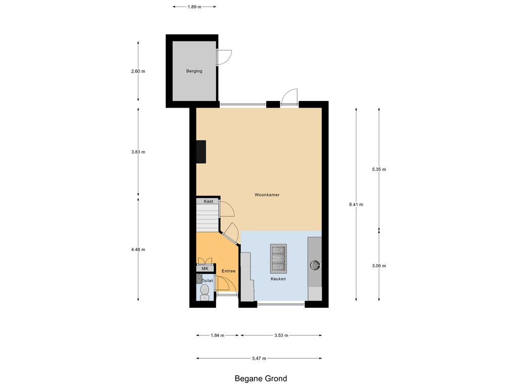 Via de voortuin stap je achter de voordeur binnen in de hal met meterkast en toiletruimte. Je hangt je jas op en loopt de doorzonwoonkamer met open keuken in. Wat een fijne ruimte! Lekker licht en met circa 40 m² ook nog eens heerlijk ruim. In de woonkamer is voldoende plek voor een grote zithoek én een gezellige eethoek. Onder de trap vind je de welbekende trapkast, waar je altijd verbazingwekkend veel in kwijt kunt.