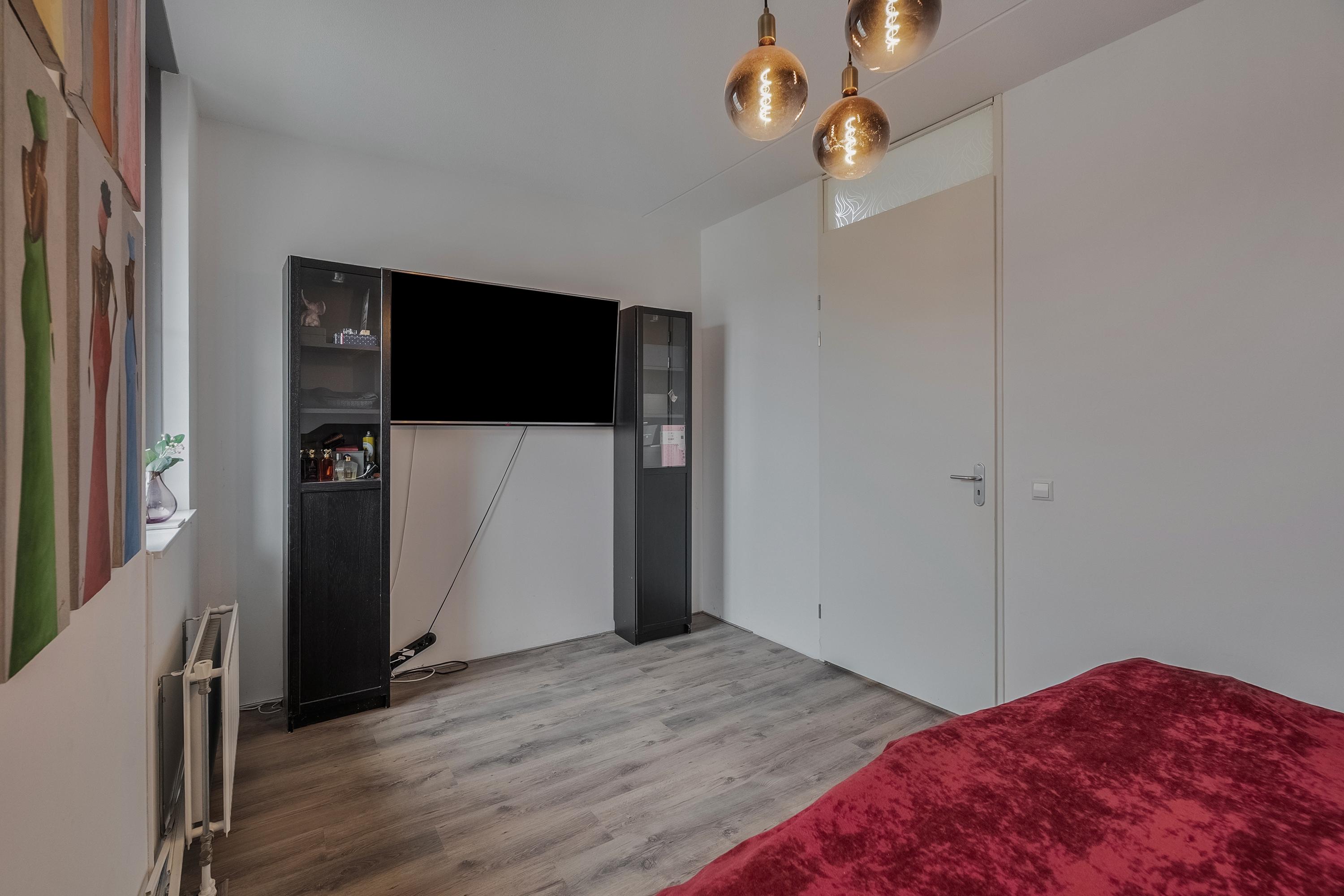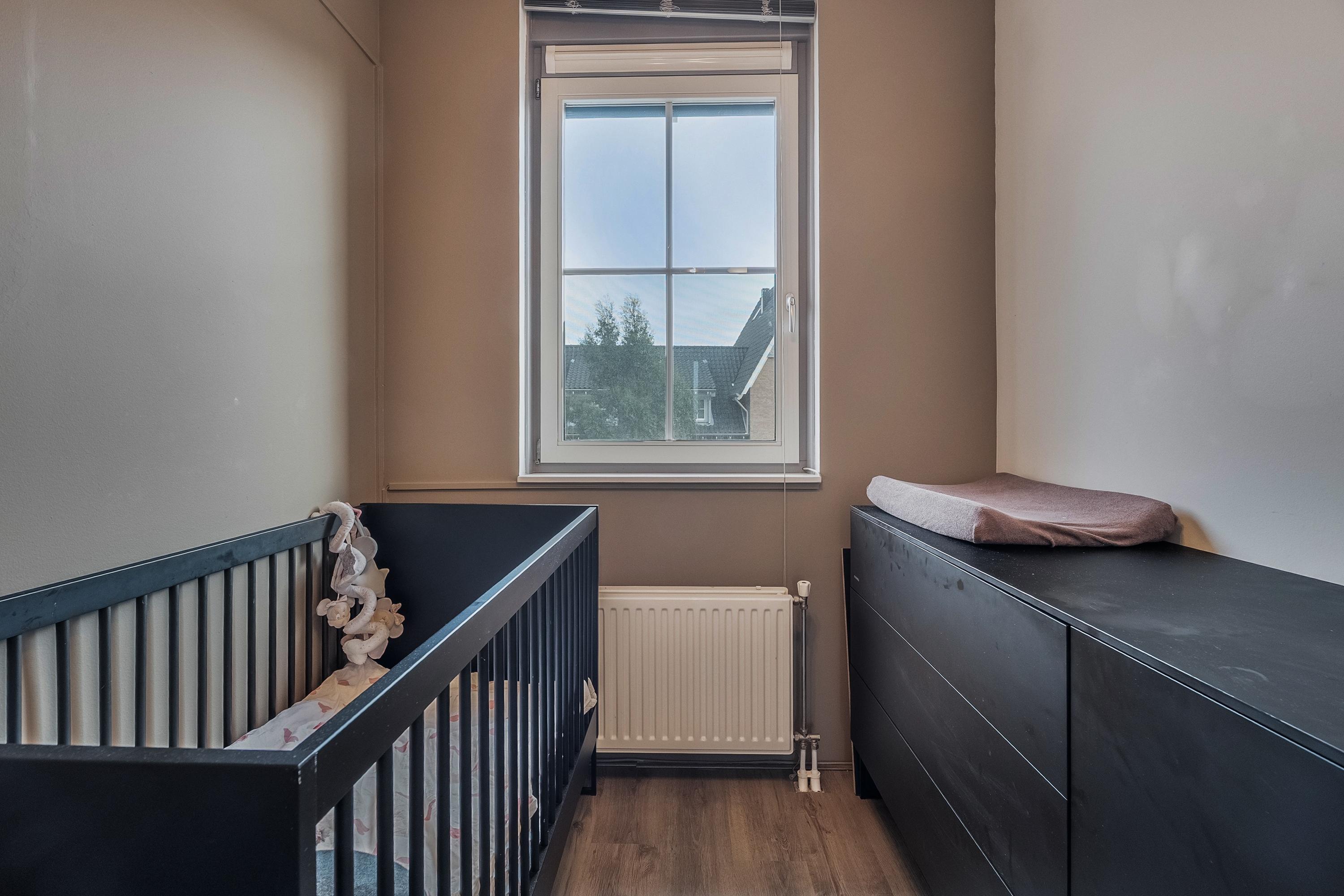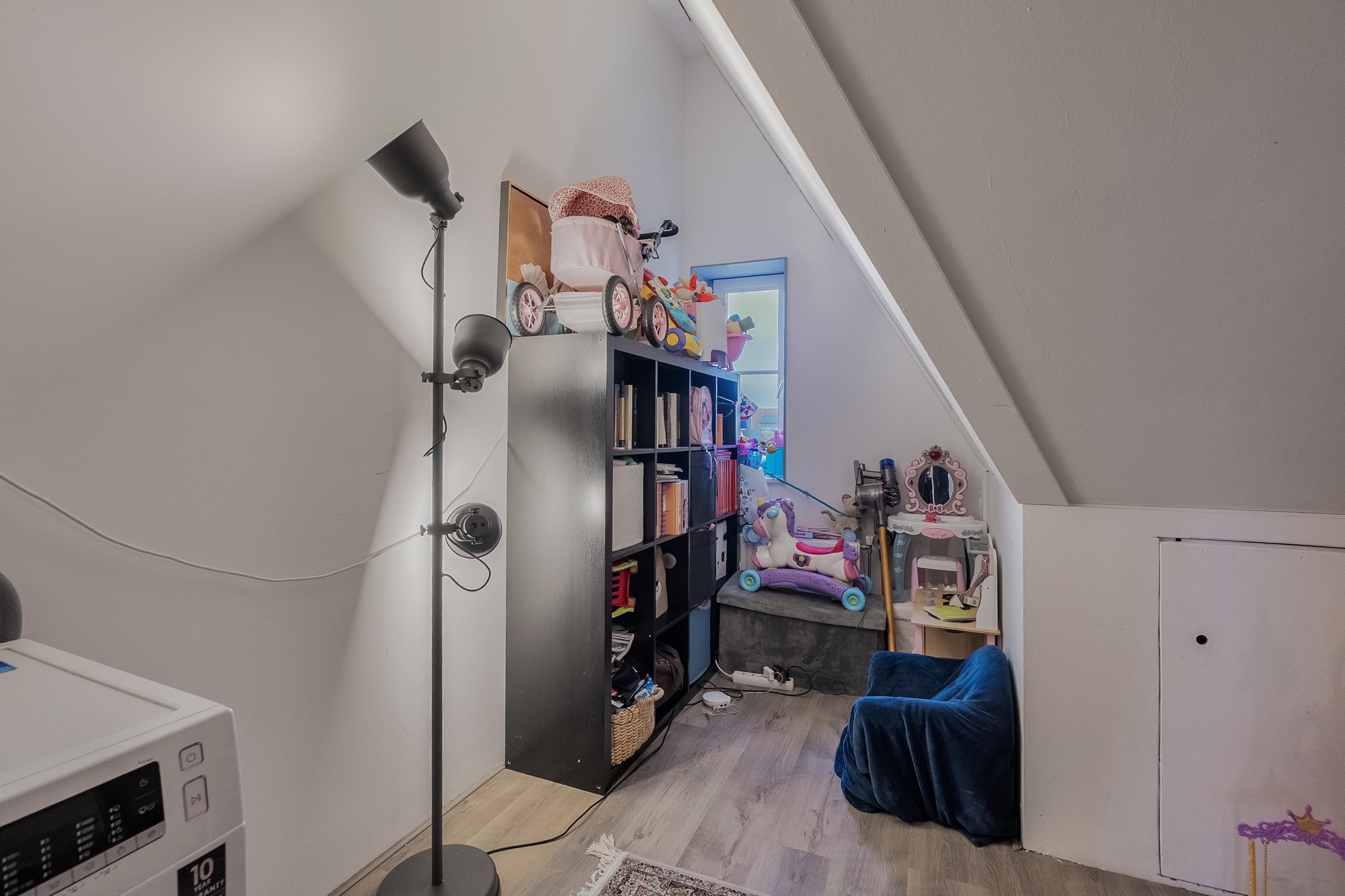 Via de vaste trap komen we op de tweede verdieping. Aan de achterzijde bevindt zich slaapkamer vier, voorzien van twee Velux dakramen die zorgen voor prettig daglicht.