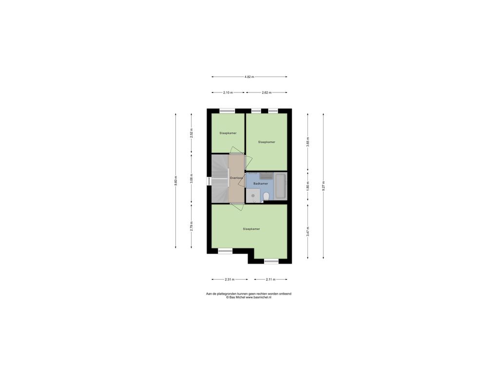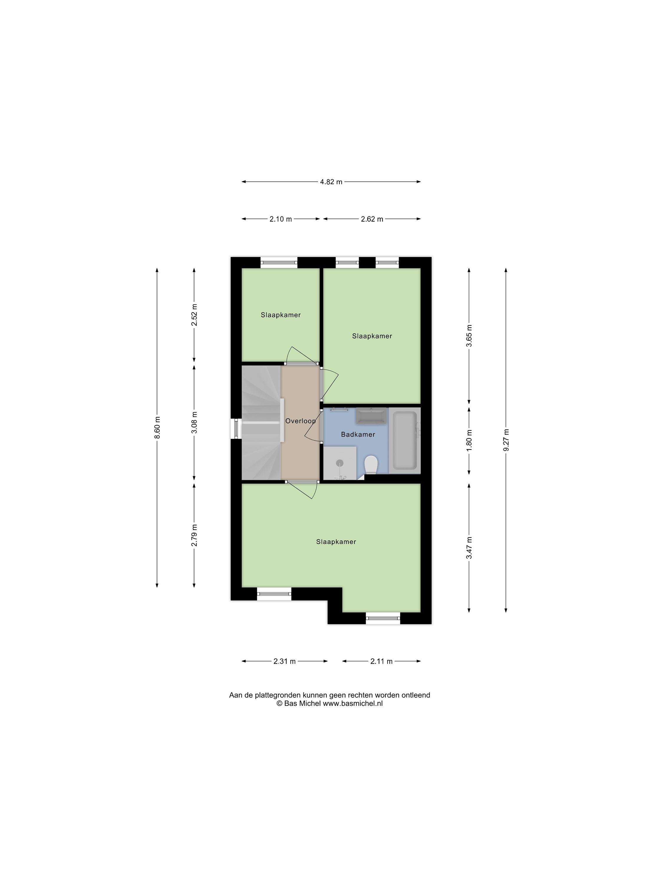 Op de eerste verdieping vinden we de overloop met trapopgang naar de tweede verdieping. De gehele verdieping is voorzien van een nette laminaatvloer. Hier bevinden zich drie slaapkamers: de royale master bedroom van circa 15 m² aan de voorzijde en twee slaapkamers aan de achterzijde van respectievelijk circa 10 en 6 m².