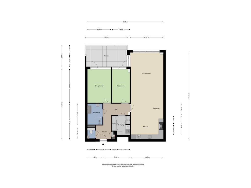 Alle wanden zijn afgewerkt met glad stucwerk