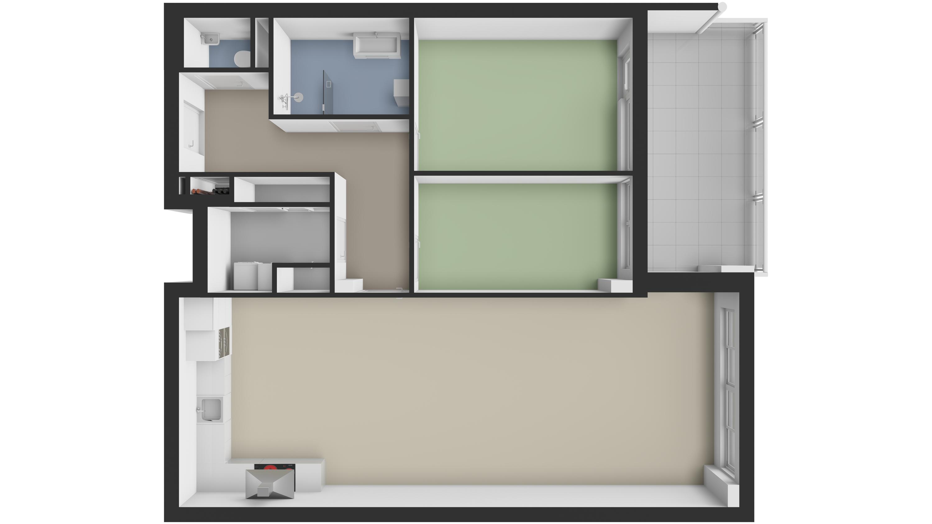 De woning beschikt over twee ruime slaapkamers, waarvan de grootste direct toegang biedt tot het royale balkon van 15 m² op het zuiden. Dit terras is een heerlijke buitenruimte met volop privacy, waar je van ’s ochtends tot ’s avonds kunt genieten van zon, uitzicht en rust.