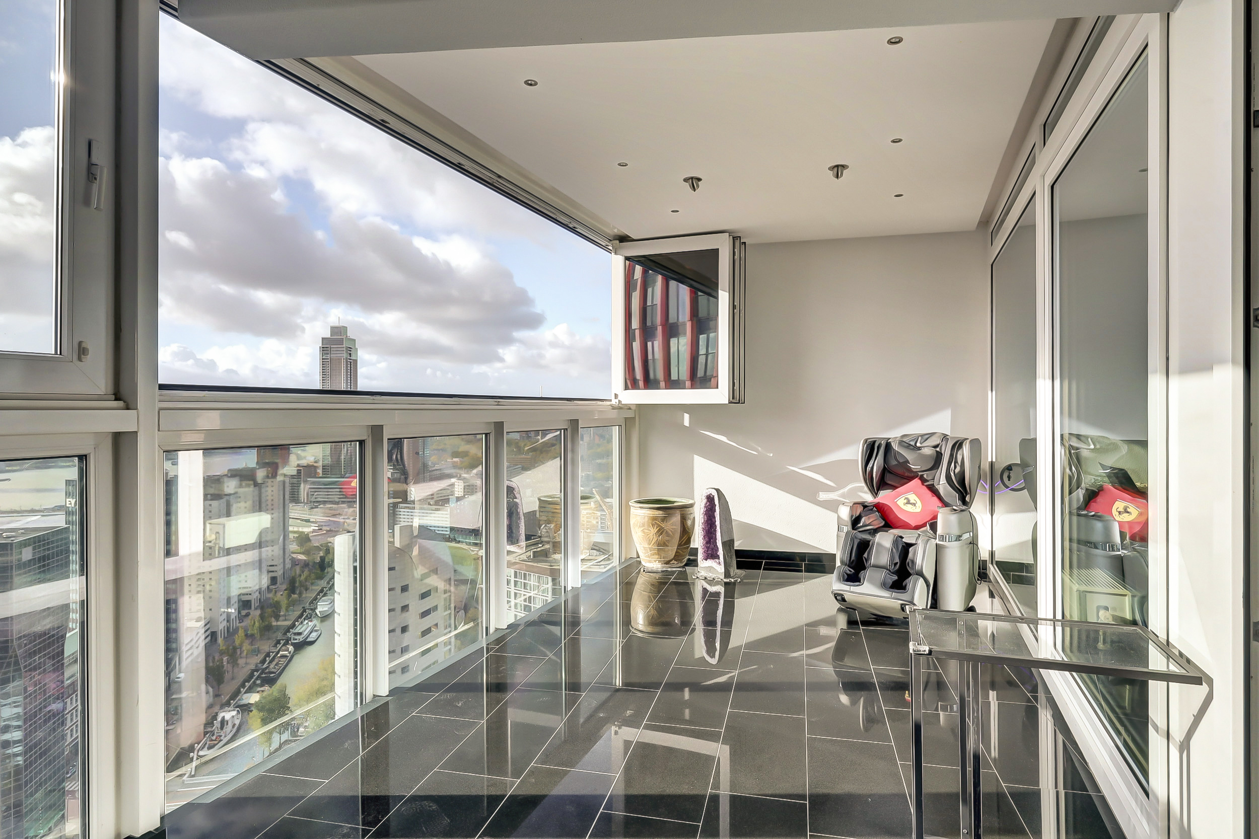 This 1182 m² penthouse on the 36th floor of apartmentxcomplex Waterstadtoren is located in the heart of Wijnhaveneiland in the booming Maritime District. This top-floor apartment is characterized by spectacular views of almost the entire city. In the morning as the sun rises, during the day with constantly changing skies, and in the evening when the city is beautifully illuminated! A picture is worth a thousand words; be sure to check the photos to get a glimpse of the experience that awaits when you step inside...