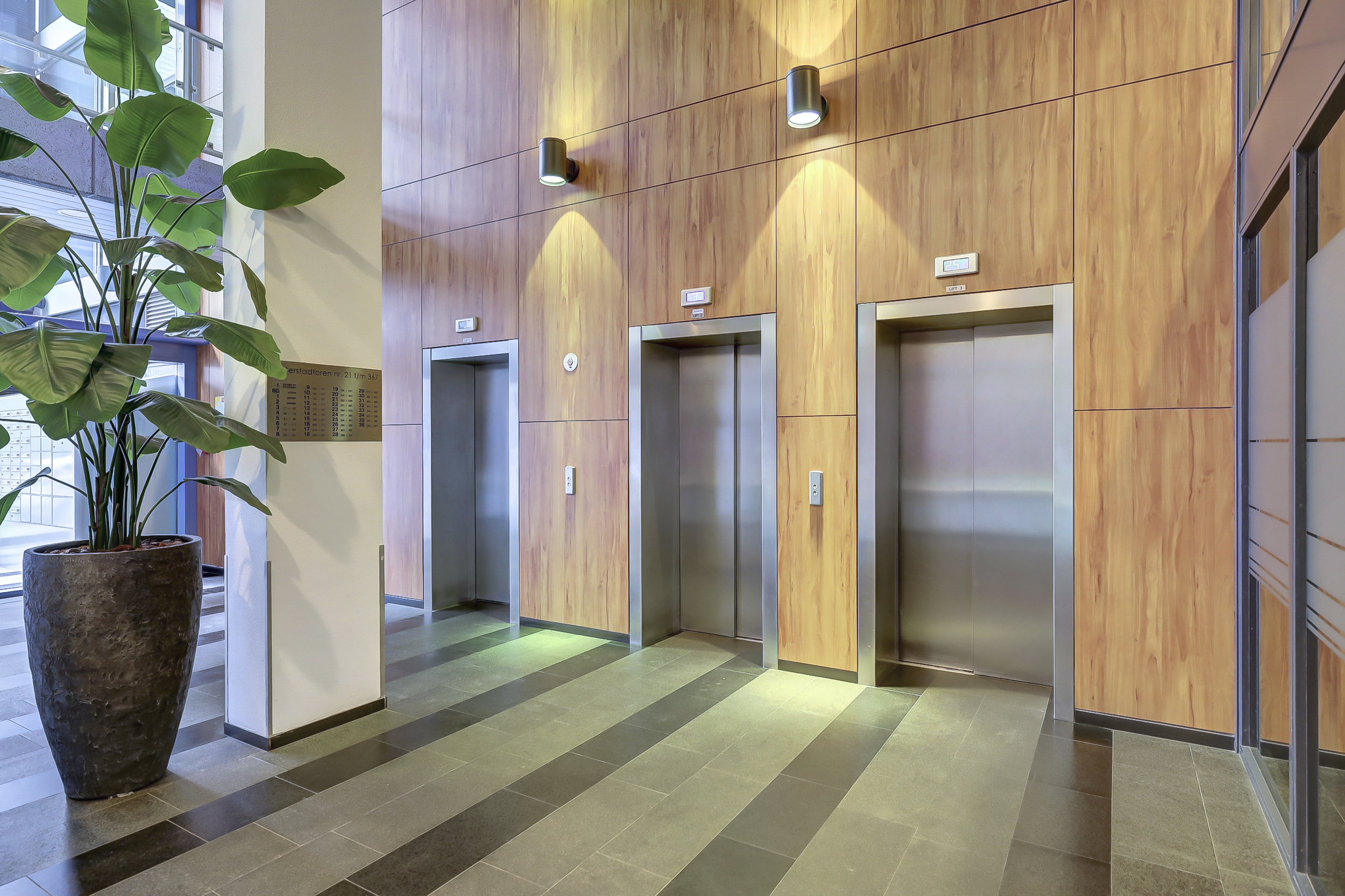 Op de begane grond kom je langs de brievenbussen de centrale hal in waar zich de 2 liften bevinden. Op de 36e etage stap je de lift uit en loop je naar links richting de eigen voordeur. Achter de voordeur stap je de hal binnen met een ruime garderobe, de meterkast en het toilet. Vanuit de hal stap kijk je direct schitterend over Rotterdam Oost uit. Rotterdam, wat ben je toch mooi! Je kijkt over het Centrum en Kralingen over de Kralingse plas, schitterend!