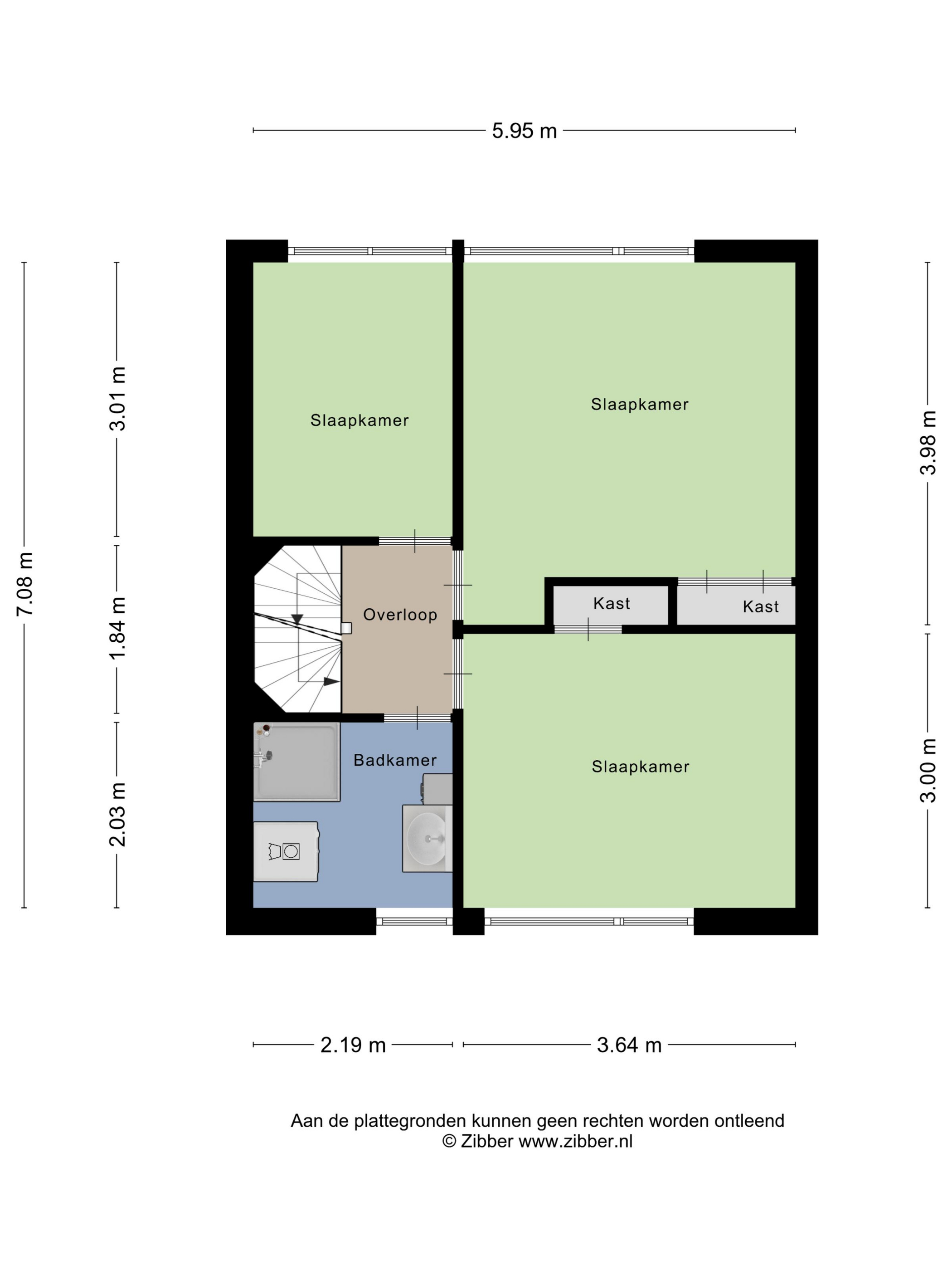 De slaapkamers op deze verdieping zijn voorzien van vloerbedekking en behang.